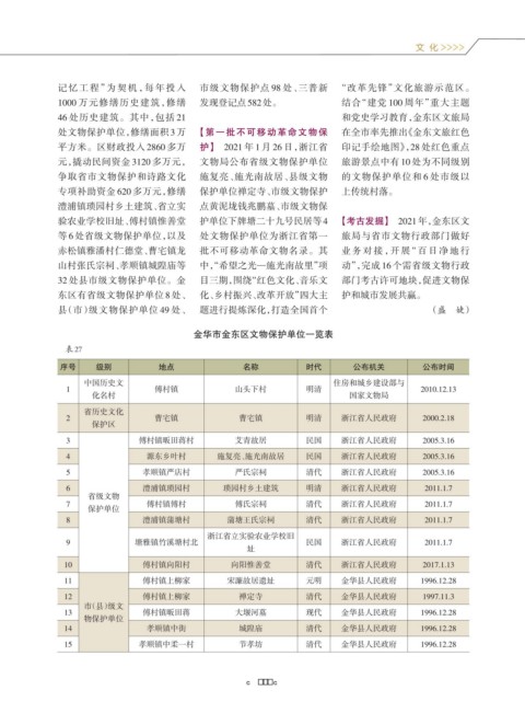 46 处历史建筑。其中,包括 21 和党史学习教育,金东区文旅局