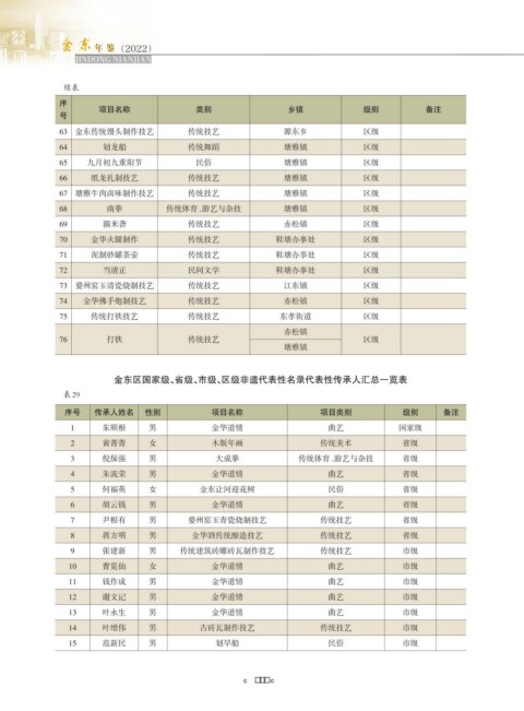 金东区国家级、省级、市级、区级非遗代表性名录代表性传承人汇总一览表