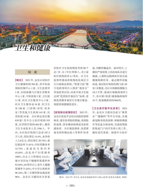 【概况】 2021年,金东区设医疗 监督所建成省级规范化基层卫 健康保障任务。通过硬件设施