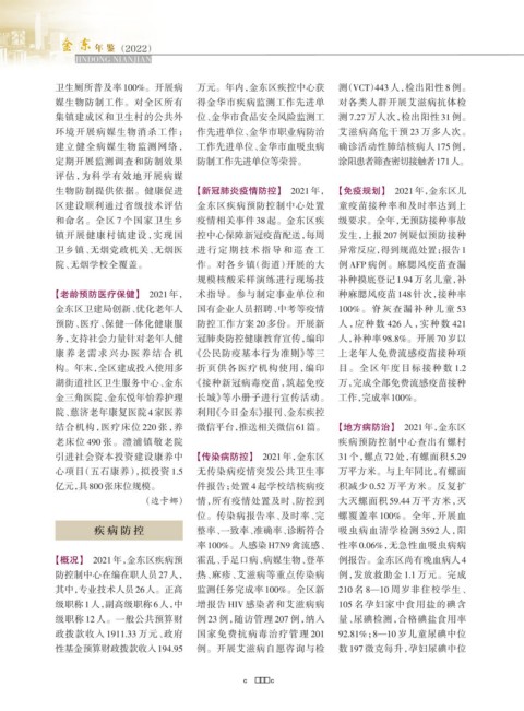 结合机构,医疗床位 220 张,养 微信平台,推送相关微信61篇。 【地方病防治】 2021年,金东区