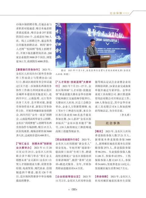 目,是区级同类赛事中举办规格 【企业技能等级认定】 2021 年 【养老保障】 2021年,金东区人