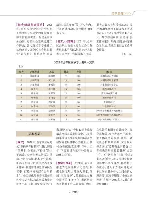 2021年金东区百岁老人名录一览表