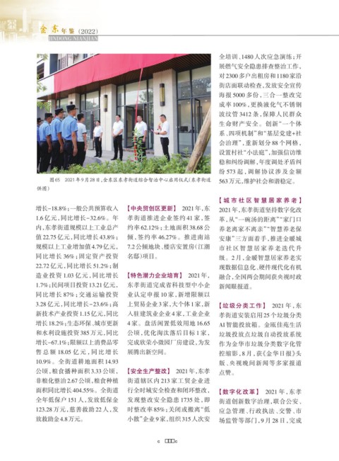 图65 2021年9月28日,金东区东孝街道综合智治中心启用仪式(东孝街道 563万元,维护社会和谐稳定。