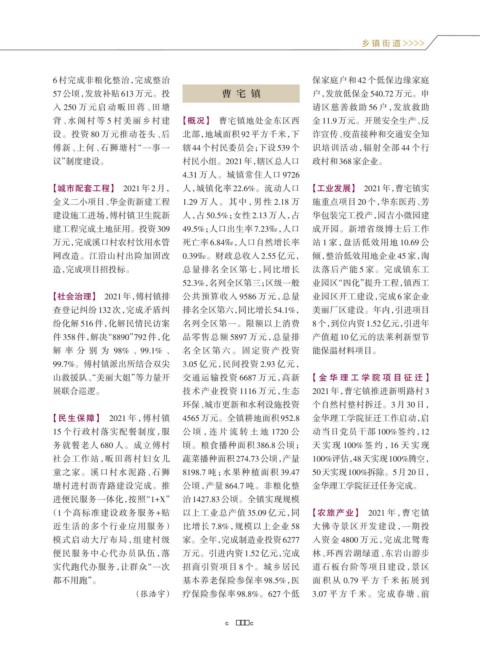 【城市配套工程】 2021 年 2 月, 人,城镇化率 22.6%。流动人口 【工业发展】 2021年,曹宅镇实