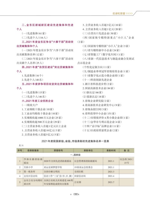 名 和 誉 (一)2021年度金东区争当“六事干部”活动突 (六)省专精特新中小企业(24家)