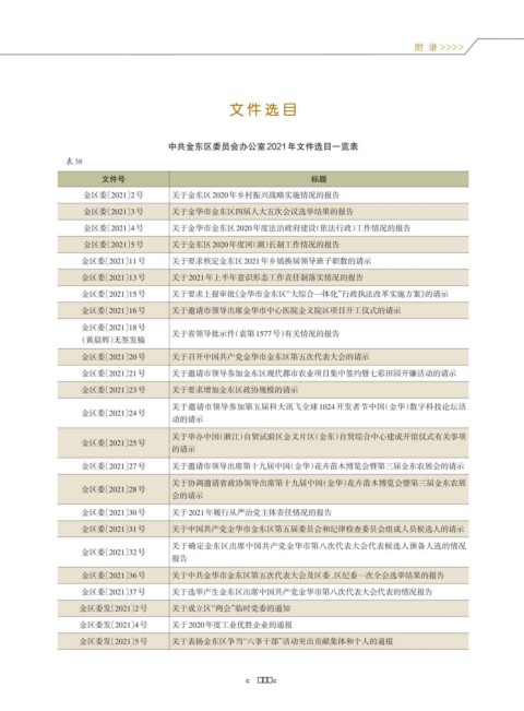 中共金东区委员会办公室2021年文件选目一览表
