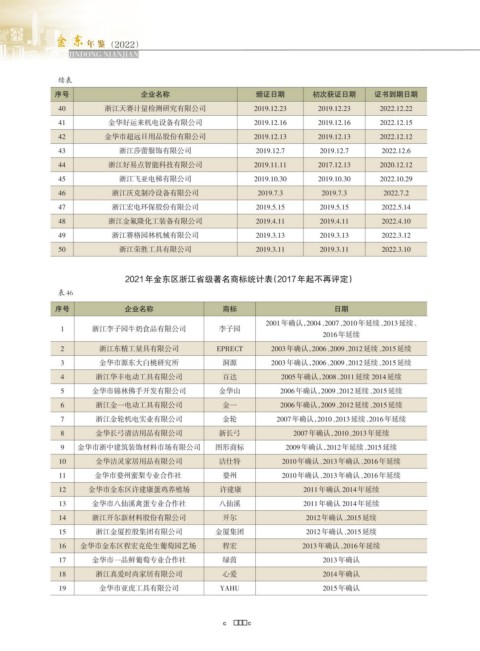 2021年金东区浙江省级著名商标统计表(2017年起不再评定)