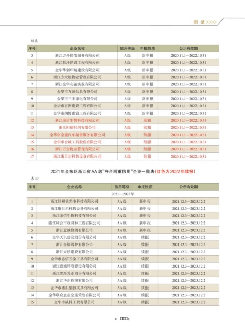 2021年金东区浙江省AA级”守合同重信用”企业一览表(红色为2022年续报)