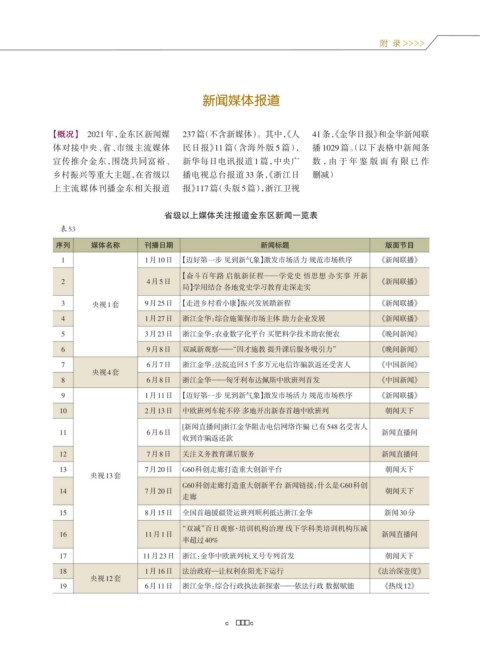 宣传推介金东,围绕共同富裕、 新华每日电讯报道 1 篇,中央广 数 ,由 于 年 鉴 版 面 有 限 已 作