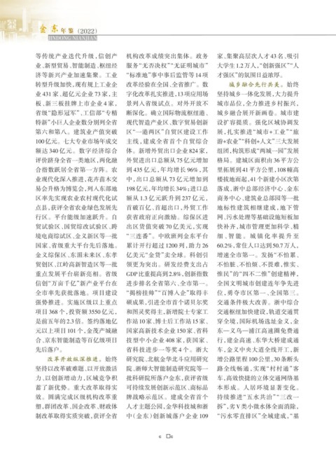 制改革取得实质突破,获评全省 中(金东)创新城落户企业 109 “污水零直排区”全域建成,“基