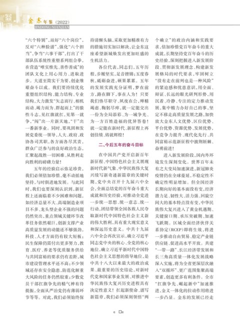 争,“闯”出一片新天地,“干”出 为一方百姓造福的优异答卷! 放大金东人文优势、区位优势、