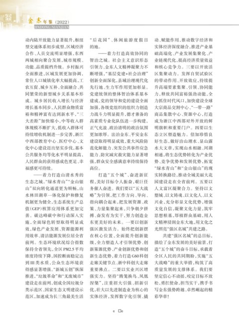 类示范区、国家生态文明建设示 优,壮大以先进制造业为核心的 写金东强势跨越、卓然崛起的精