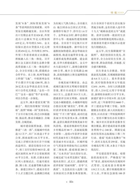 裕”,按照“两城一园”发展布局, 村获评省级美丽城镇样板镇。 健康金东建设,新人民医院竣工