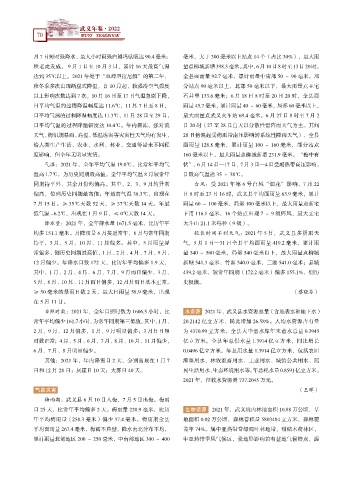 气温:2021 年,全年平均气温 19.0℃,比常年平均气 伏”,6 月 14 日—17 日、7 月 3 日—4 日受副热带高压影响,
