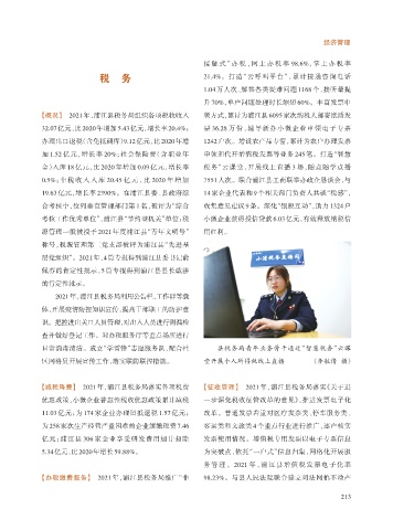 【办税缴费服务】 2021 年,浦江县税务局推广“非 98.23%。与县人民法院联合建立司法网拍不动产