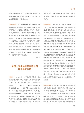 【概况】 2021 年,中国人寿保险股份有限公司浦江 用机制,推行党员亮牌示范、先锋岗、志愿服务、认