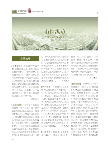 北与诸暨市交界。全市南北长 【矿产资源】 至 2022 年,义乌市 地总面积 11.05 万公顷,林地面