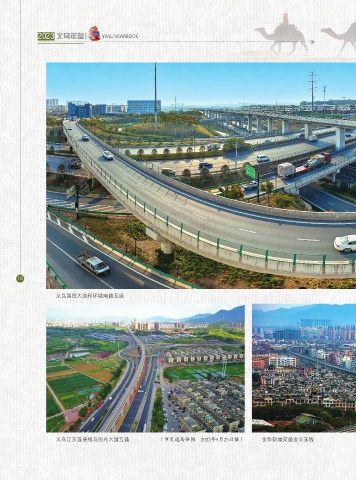 2023 义乌年鉴 YIWU YEARBOOK 16 义乌国贸大道和环城南路互通 (吴献华 2022年10月15日摄) 义乌江东连接线与阳光大道互通 (市交通局供图 2022年5月25日摄) 金华轨道交通金义东线 (吴献华 2022年3月13日摄)