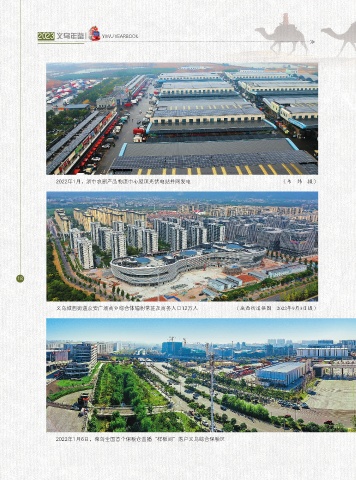 2023 义乌年鉴 YIWU YEARBOOK 2022年1月,浙中农副产品物流中心屋顶光伏电站并网发电 (韦 炜 摄) 18 义乌城西街道众安广场商业综合体辐射常驻及商务人口12万人 (城西街道供图 2022年9月3日摄) 2022年1月6日,菜鸟全国首个保税仓直播“样板间”落户义乌综合保税区 (程培英 摄)
