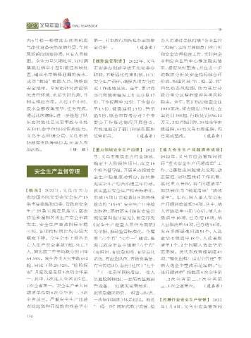 【概 况】 2022 年,义乌市大力 抓实基层安全生产检查标准化, 加快转化为“制度清单”“成效