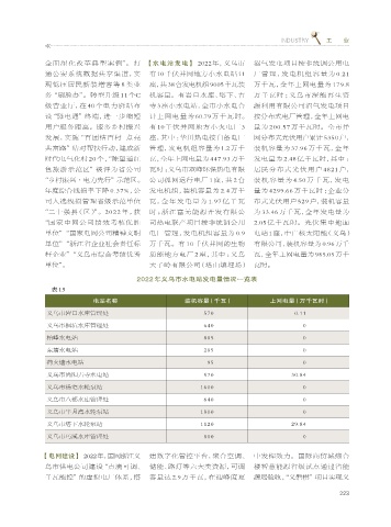 “二十强县(区)”。2022 年,获 时 ;浙 江 富 元 能 源 开 发 有 限 公 为 33.46 万千瓦,全年发电量为