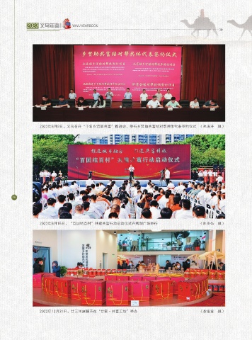 2023 义乌年鉴 YIWU YEARBOOK 2022年6月9日,义乌召开“千名乡贤助共富”推进会,举行乡贤助共富结对帮共体代表签约仪式 (郑海洋 摄) 26 2022年6月15日,“百团结百村”共建共富行动启动仪式在绣湖广场举行 (陈安仙 摄) 2022年12月31日,廿三里麻糖节在“廿家·共富工坊”举办 (龚露露 摄)