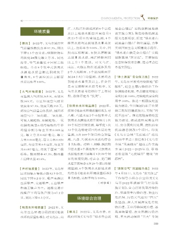 【大气环境质量】 2022 年,义乌 乌市水质省考指标好于上年同 协调推进机制,重点建设用地安
