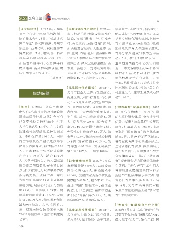 【概 况】 2022 年,义乌市制定 查,开展眼保健、口腔保健、母 【“幼有善育”发展新路径】 2022