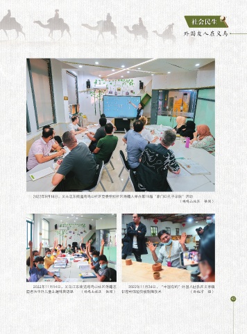 社会民生 外国友人在义乌 2022年9月18日,义乌江东街道鸡鸣山社区党委组织社区外籍人举办第19届“家门口孔子学院”活动 (鸡鸣山社区 供图) 2022年11月14日,义乌江东街道鸡鸣山社区外籍志 2022年11月24日,“中国有约”外国人团队在义亭镇 愿者为中外儿童上趣味英语课 (鸡鸣山社区 供图) 缸窑村体验传统制陶技术 (孙航宇 摄) 43