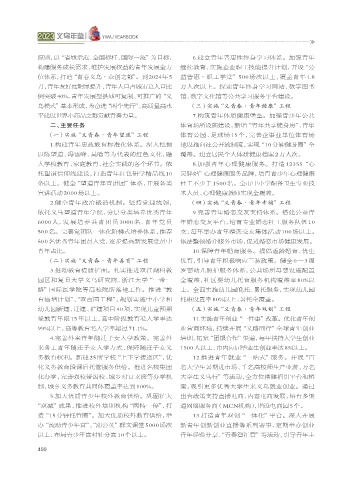 以上,布局青少年宫村社分宫 10 个以上。 青年经验分享、“青春智汇营”等活动,引导青年主
