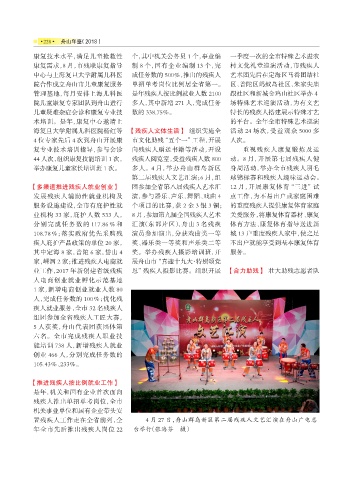 业机构 33 家,庇护人数 533 人, 8 月,参加第九届全国残疾人艺术 关爱服务,将康复体育器材、康复