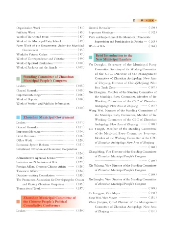 Work of Deputies …………………………… (108) Working Committee of the CPC of Zhoushan
