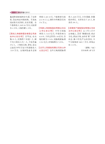 临城街道新城商会大厦,下设普 费收入 265 万元,个险赔款支出 收入 4230 万元,业务规模、价值