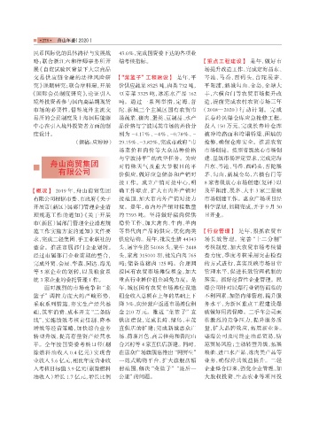 【概况】 2019 年,舟山商贸集团 确工作职责,扩大市内外产销对 及平阳浦、展茅、大丰 3 家三星级