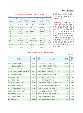 2019 年舟山海关对主要国家(地区)进出口情况 课题研究,动态报送舟山对美出