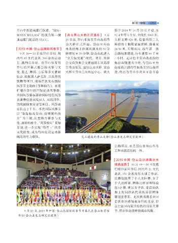 举行的开幕式晚会将风筝与文 至秀山始发,途径江南大桥、官山 山疏港公路的牛轭岛至官山岛顺