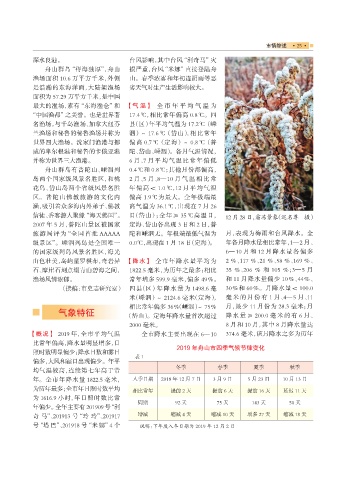 【概况】 2019 年,全市平均气温 全市降水主要出现在 6—10 374.6 毫米,该月降水之多为历年