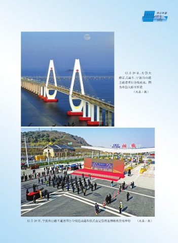 2017 2018 2019 2020 2021 2022 12 月 29 日,舟 岱 大 桥正式通车,宁波舟山港 主通道项目全线建成。图 为舟岱大桥主桥梁 (沈磊/摄) 12 月 29 日,宁波舟山港主通道项目全线建成通车仪式在定岱高速烟墩收费站举行 (沈磊/摄)