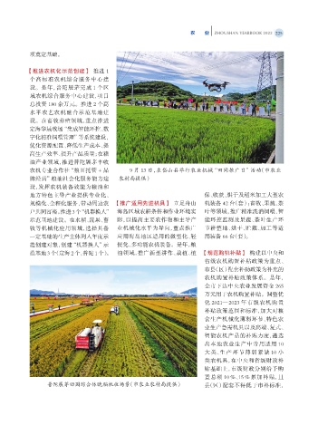 规模化、全程化服务,带动周边农 【推广适用先进机具】 立足舟山 机装备 42 台(套);畜牧、果蔬、茶