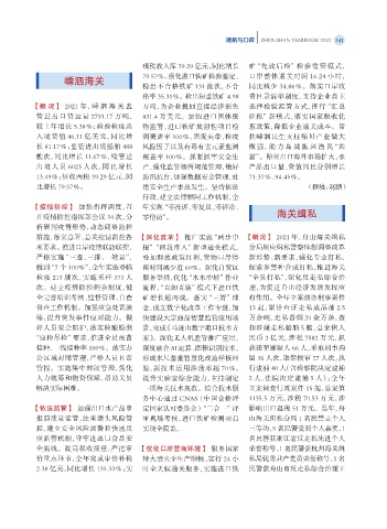 措施,落实总署、总关疫情防控各 【深化改革】 推广实施“两步申 【概况】 2021 年,舟山海关缉私