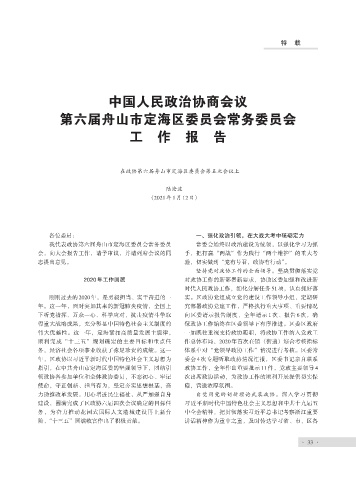 我代表政协第六届舟山市定海区委员会常务委员 常委会始终以政治建设为统领,以强化学习为抓
