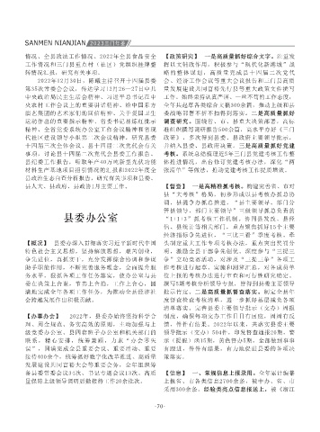 近平总书记在《求是》杂志发表的重要文章精神、 通知(送审稿)》,听取县十四届二次党代会有 十四届三次全体会议、县十四届二次党代会有关 并纳入县委、县政府决策。三是高质量抓好党建 要领导批示100%,有力推动突发情况的快速妥善 【对台工作】 联络联谊。2022年春节前夕,县台 新强县首位战略,创新实干争一流,砥砺前行谋 托冲锋衣、渔业养殖、农产品等优势产业,围绕 机制综合改革试点工作现场推进会上作典型经验