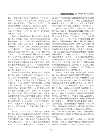 第11次:7月21日召开,县委副书记、县长陈 研究三门县城1-C3地块拆迁安置房工程投资概算 出让相关情况汇报;听取疫情防控工作汇报。 大制造业项目、重点工业项目,以及怡威新材料 务服务便利化全覆盖,并成功召开台州市政务服 量完成国办、省府办约稿269篇;编发县本级政务 台应用。依托四级联动服务网络,将平台延伸至 用模拟审批,实现“拿地即开工”。常态化推进