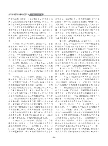 县重大制造业项目、三门县重点工业项目,“奉 新政补充规定(送审稿)》;审议《关于做好 国房地产开发有限公司等4宗土地竣工延期;审议 发展策略》《MRL台州项目投资选址及发展规划》 划指标调整有关事宜;研究收购浙江三达工业用 问题集体研究、民主集中、会议决定。严格落实 架12个应用至浙里办,其中“鲜甜三门”为台省 力打造三门“好差评”快速反应处置品牌,确保 位组成的联席会议机制,通过中心门户网站公开 实现资产共享共用。2022年,为集中办公、大型