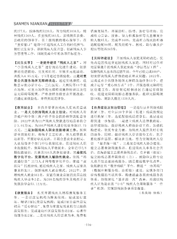 SANMEN NIANJIAN 2023三门年鉴 活动等,要求做到凝聚共识学,在思想认识上有 “三领三办”三大行动,即执委领户数,办暖事, 点位打造,以点带面、以面促线、连线成片。发 成年人心理健康呵护行动》实施方案,将心理健 妇儿驿站、文化礼堂等举办亲子关系、青春期教