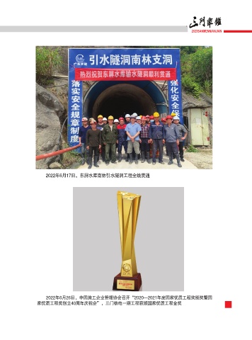 2023SANMENNIANJIAN 2022年6月17日,东屏水库南林引水隧洞工程全线贯通 2022年6月26日,中国施工企业管理协会召开“2020—2021年度国家优质工程奖颁奖暨国 家优质工程奖创立40周年庆祝会”,三门核电一期工程获颁国家优质工程金奖 ̾̾