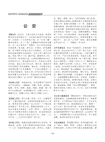 的正确领导下,坚持以学习贯彻党的十九届七中 为主要内容的国防教育,确保国防观念深入人心 查;突出疫情防控规范管控,从严落实硬性规定, 点人员管控组、小门管控组,全县528名专职网格 景应用。三年来,帮助200余名问题青年回归正常 “苍穹”禁毒、“反电诈”涉网新型犯罪预防2个 和市局党委的领导下,以打造全省最平安县为目 运行公安政务服务网办中心,创新便民服务“政 “ 清廉公安”和纠“躺平”治“佛系”专题作风 上表彰。 【依法惩治各类犯罪】 审结刑事案件379件,判 快推行执行集约化改革。开展专项行动23次,共