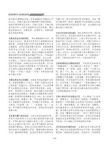 工作开展,尤其在深化民兵调整改革、提高兵员 登记、目测初检、体格检查、走访调查和政治考 容自查整治,做到登记有册、清仓见底。 保民生”专项行动,活封活扣企业13家。面向企 2000年后命案积案实现全破。 联督办平台衔接的工作规定(试行)》《三门县人 和队伍建设取得显著成绩。全县立刑事案件905 化解市级挂牌重大矛盾纠纷5起,矛盾化解率达 处民(辅)警执法被侵害案件18起,慰问被侵害 以法治力量为县域经济发展保驾护航。加快推进 委陶智炳等贪污贿赂犯罪案件7件8人。审结电信 位居全市第一。推动“执转破”向“执破融合”