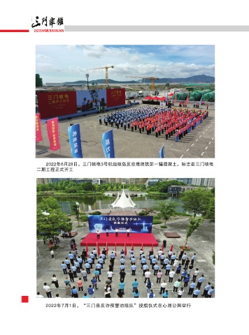 2023SANMENNIANJIAN 2022年6月28日,三门核电3号机组核岛反应堆浇筑第一罐混凝土,标志着三门核电 二期工程正式开工 ̾̿ 2022年7月1日,“三门县反诈预警劝阻队”授旗仪式在心湖公园举行