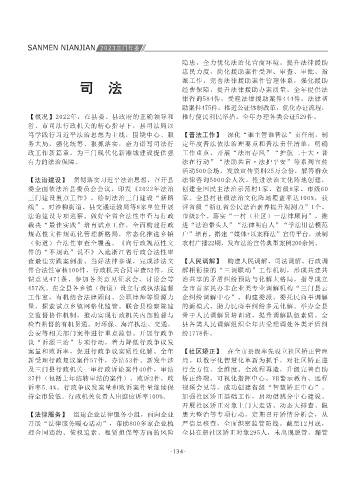 类案件”监督管理,院、庭长带头办理案件2055 廉保安 互联共创”家庭助廉等活动45次,通报典 共建法治服务,助力提升市场主体的健康发展 政和”为价值导向,推进行政争议实质性化解工 会出台规范化机制,联合市检察院在全市范围内 委全面依法治县委员会会议,印发《2022年法治 创建全国民主法治示范村1家、省级8家、市级60 人,其中,领导班子3人,正式在编事业工作人员 归集、打通和共享依托全链条智能化办理事项, 字无线自组网转发台、重型救援支撑套具、音视 合,优化组织架构,按照公安一类协辅警编制招